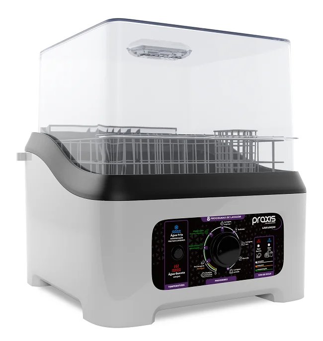 Inovação e Tecnologia Avançada, a Lava Louças Portátil Praxis oferece 8 programas de lavagem desenvolvidos para atender às suas necessidades com precisão